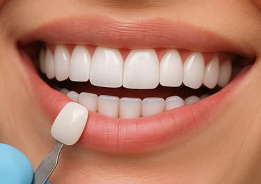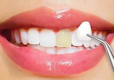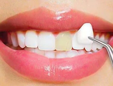 Custom-made porcelain or composite layers for a perfect smile shape.